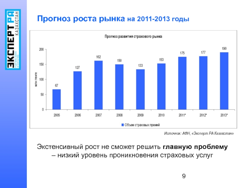 Объем страхового рынка в 2010 году составил 153,5 млрд тенге