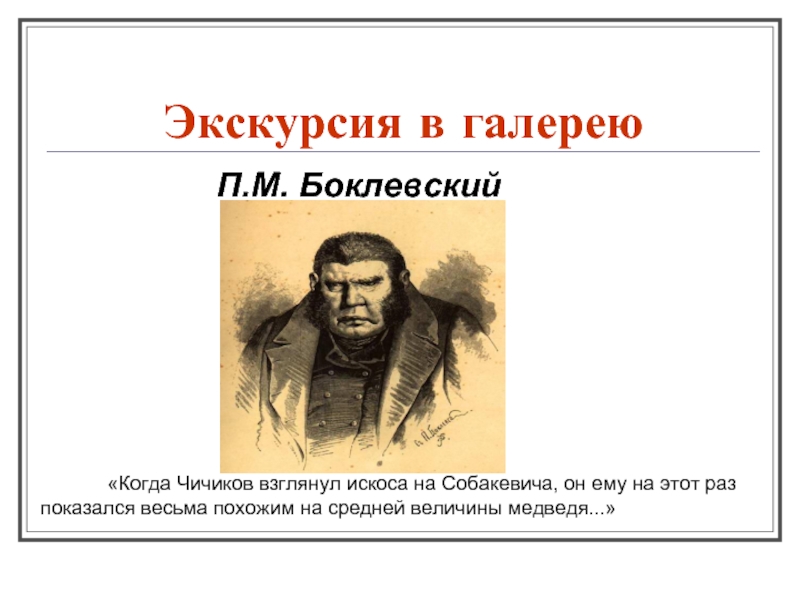 «Когда Чичиков взглянул искоса на Собакевича, он ему на этот раз показался весьма похожим на средней величины медведя...»