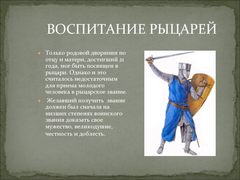 Слайд 6ВОСПИТАНИЕ РЫЦАРЕЙ