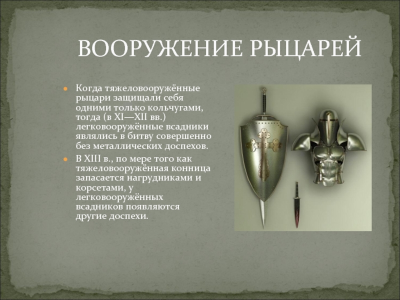 Слайд 5ВООРУЖЕНИЕ РЫЦАРЕЙ