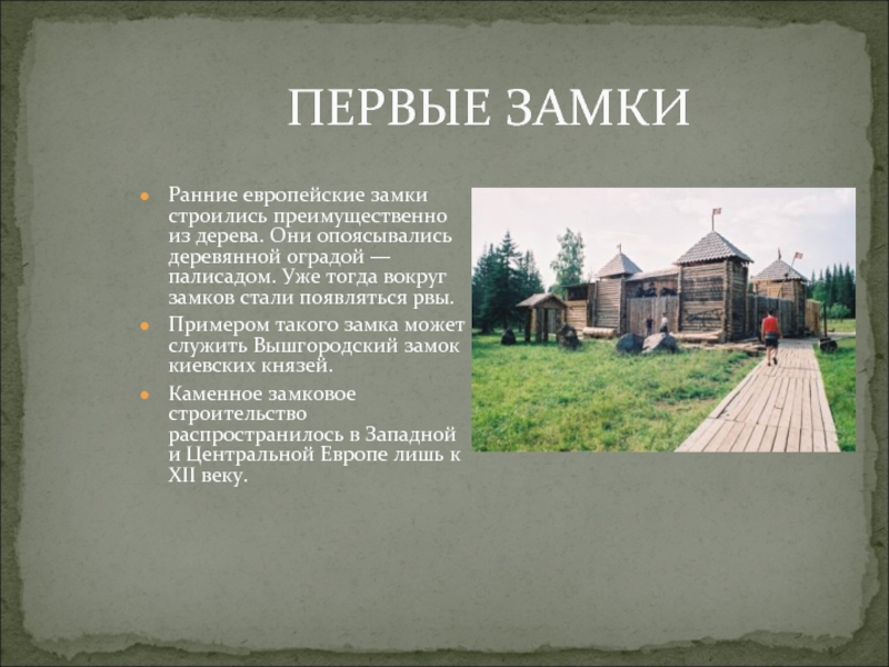 Слайд 13ПЕРВЫЕ ЗАМКИ