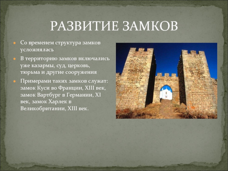 Слайд 16РАЗВИТИЕ ЗАМКОВ
