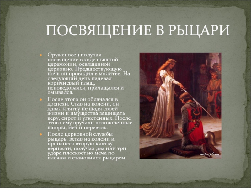 Слайд 4ПОСВЯЩЕНИЕ В РЫЦАРИ