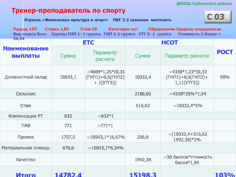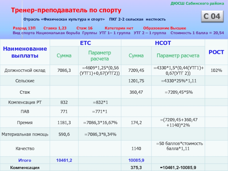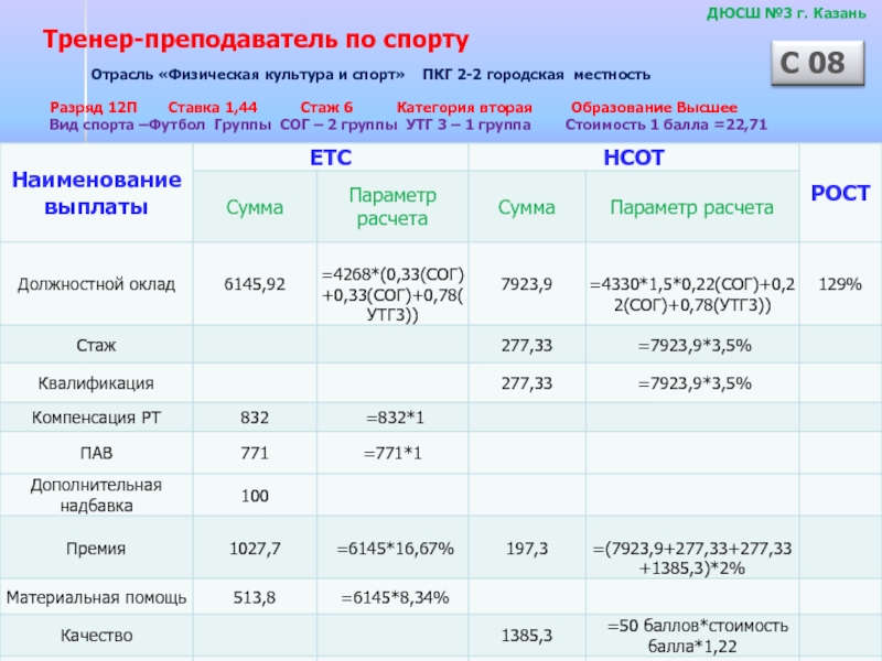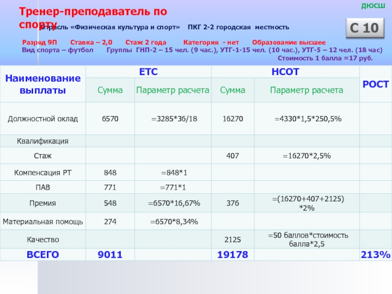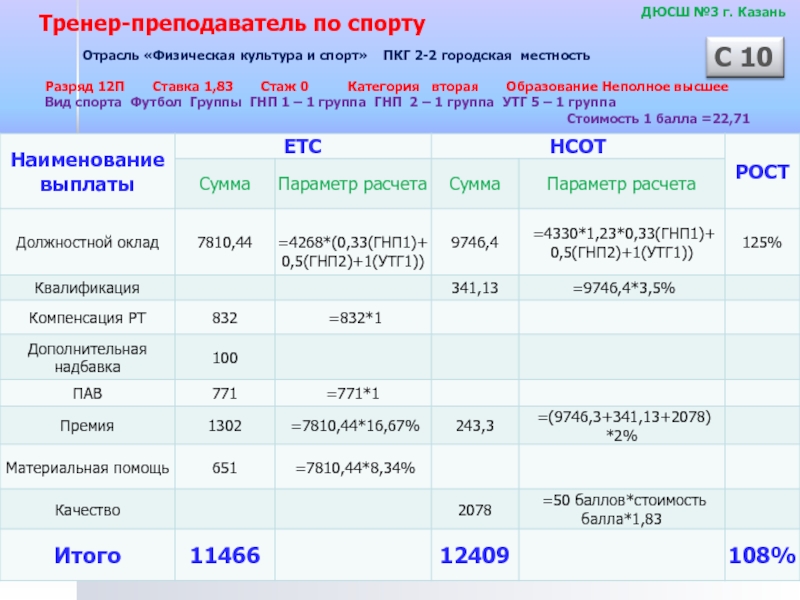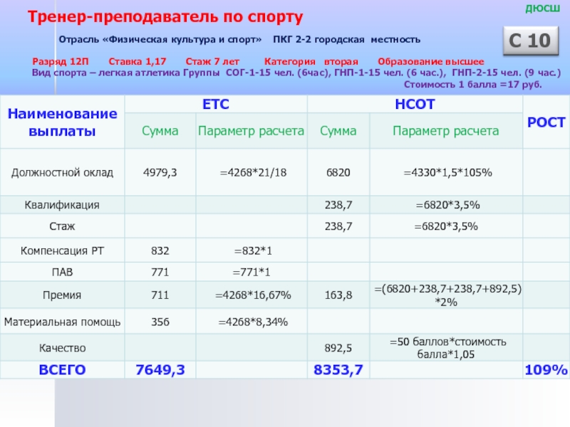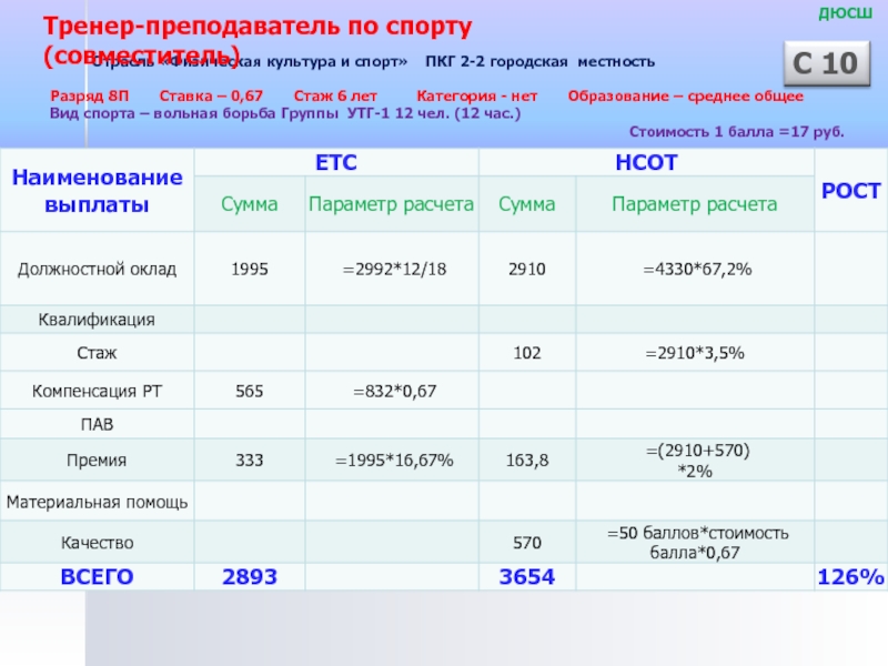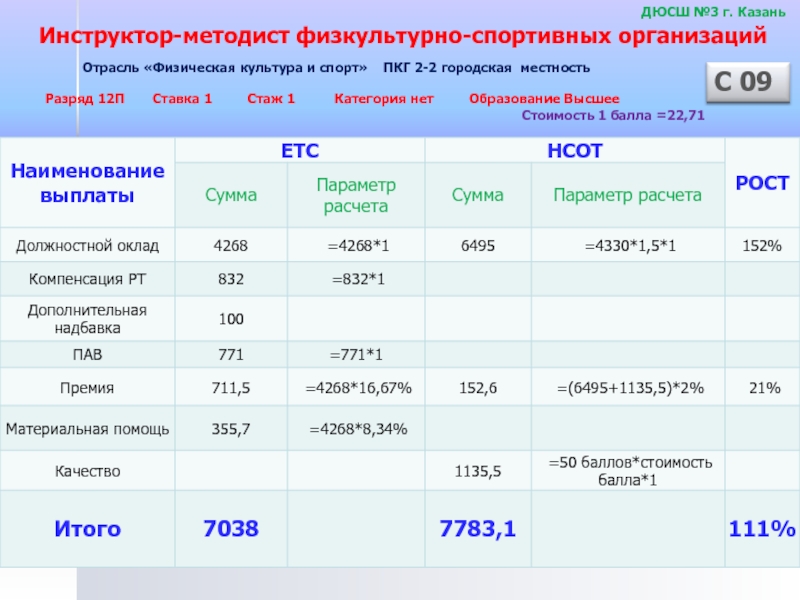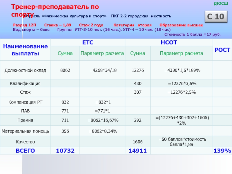 Разряд 13П Ставка 1,83 Стаж 10 Категория нет Образование Среднее специальное Вид спорта Бокс Группы ГНП 1- 1 группа ГНП 2-1 группа УТГ 5- 1 группа Стоимость 1 балла = 20,54