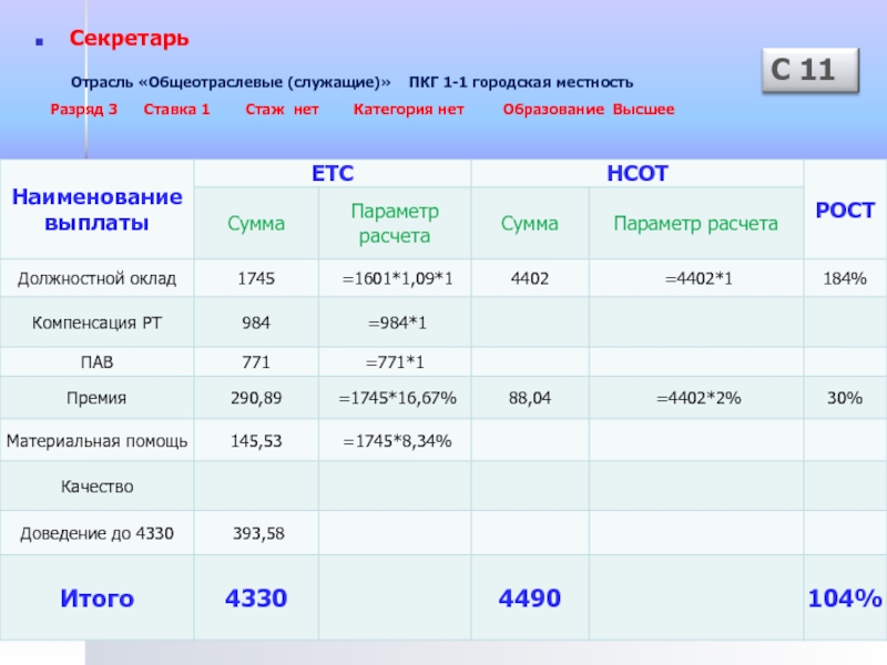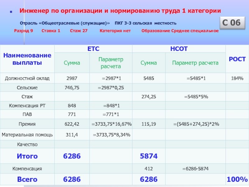 Разряд 12П Ставка 1,44 Стаж 6 Категория вторая Образование Высшее