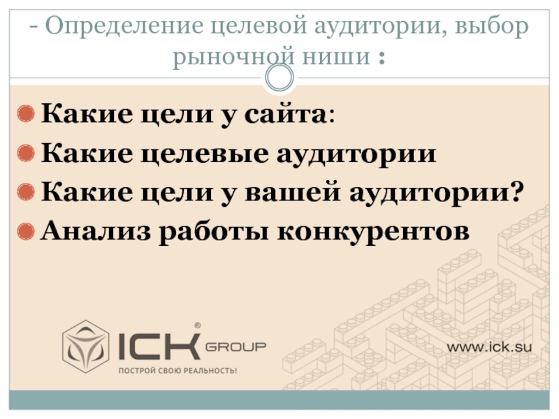 Слайд 6- Определение целевой аудитории, выбор рыночной ниши :
