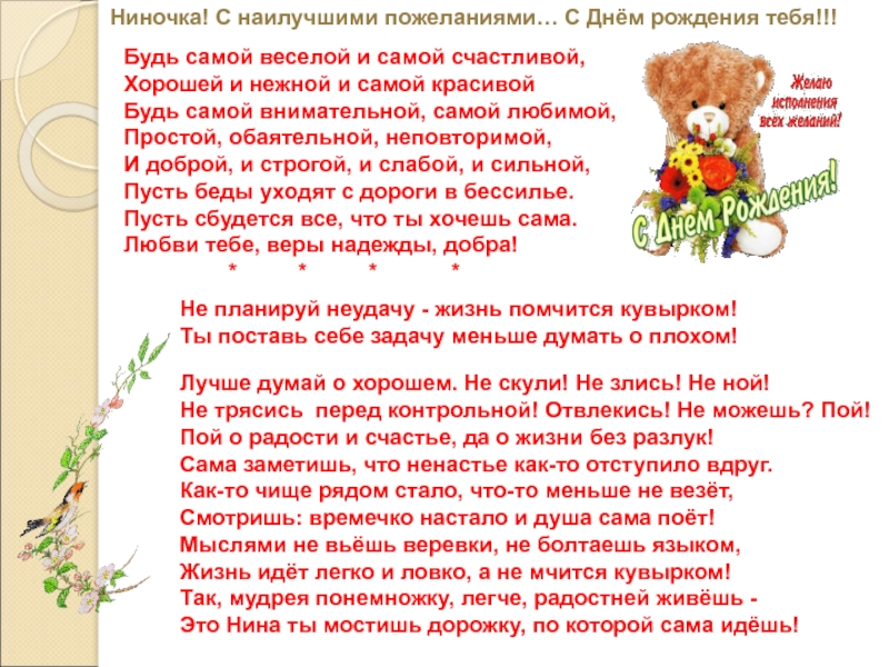 Ниночка! С наилучшими пожеланиями… С Днём рождения тебя!!!
