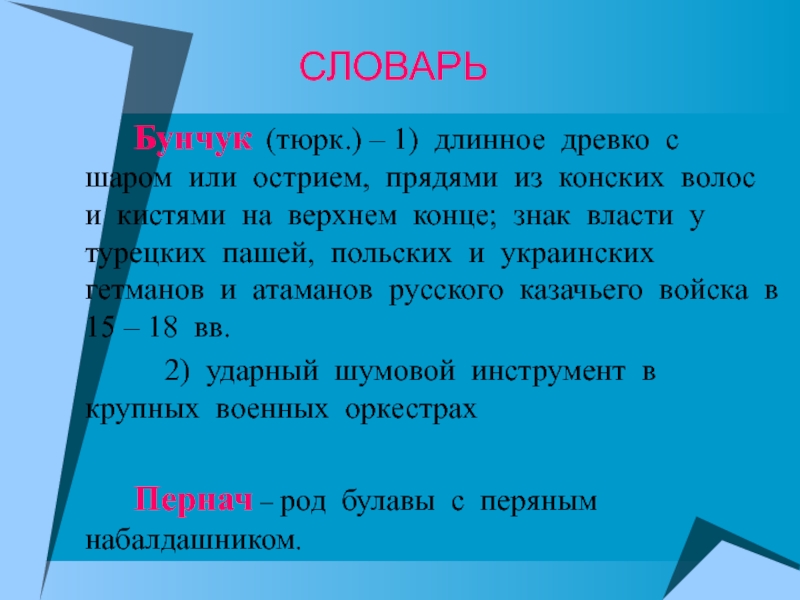 Бунчук (тюрк.) – 1) длинное древко с шаром или острием,
