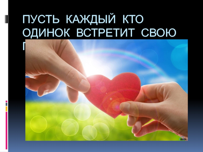 Слайд 16ПУСТЬ КАЖДЫЙ КТО ОДИНОК ВСТРЕТИТ СВОЮ ПОЛОВИНКУ