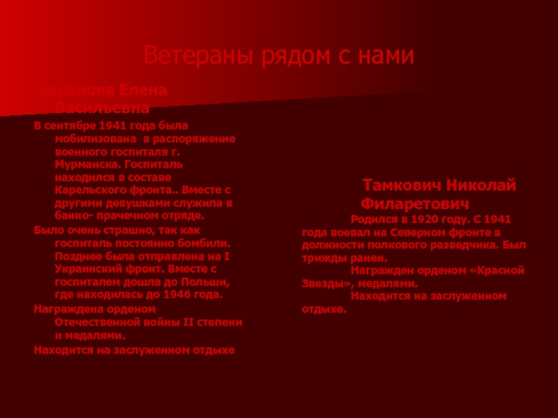 Родился в 1920 году. С 1941 года воевал на Северном фронте в должности полкового разведчика. Был трижды ранен.