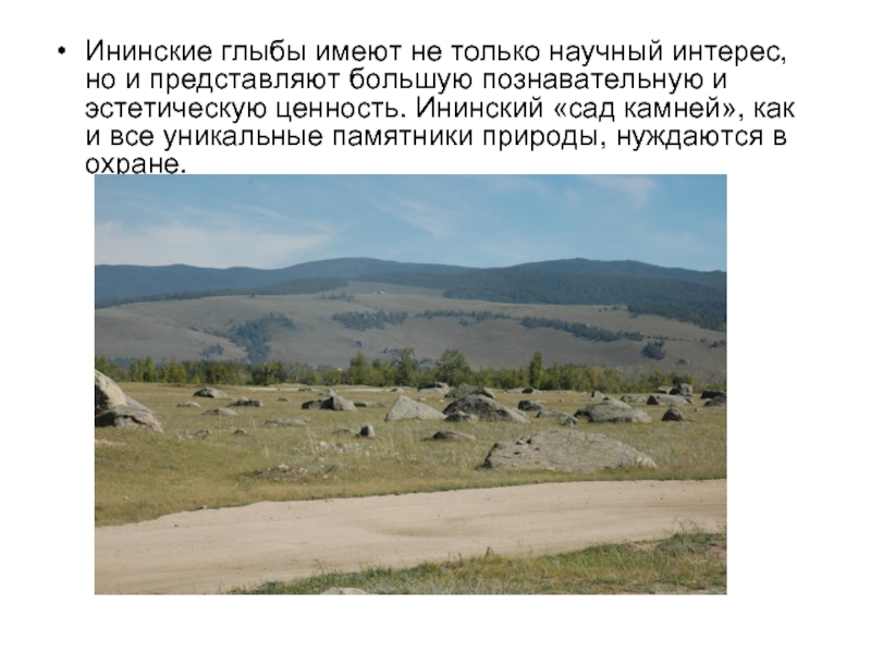 познавательную и эстетическую ценность. Ининский «сад камней», как и все уникальные памятники природы, нуждаются в охране.