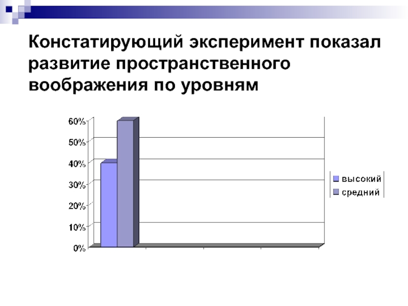 Слайд 9Констатирующий эксперимент показал развитие пространственного воображения по уровням