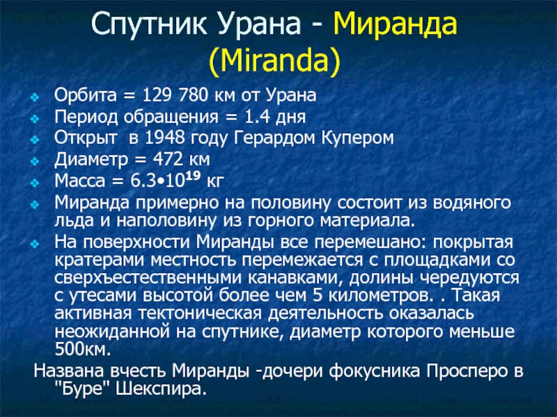 Слайд 18Спутник Урана - Миранда (Miranda)