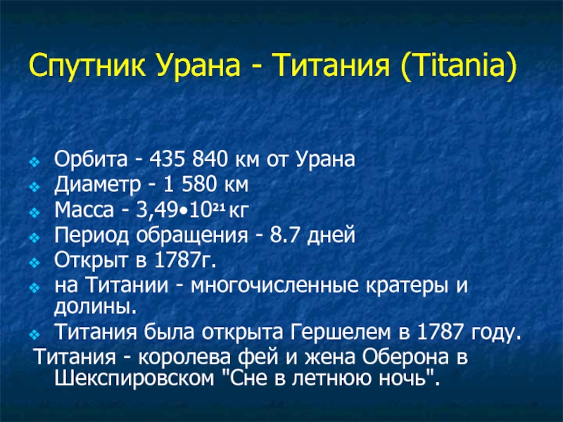 Слайд 21Спутник Урана - Титания (Titania)