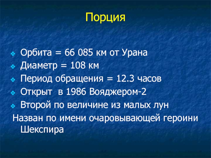 Орбита = 12 200 000 км от Урана