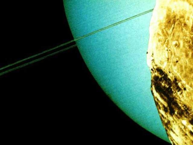 Слайд 7Во время полета к Урану Вояджера 2 южный полюс Урана почти