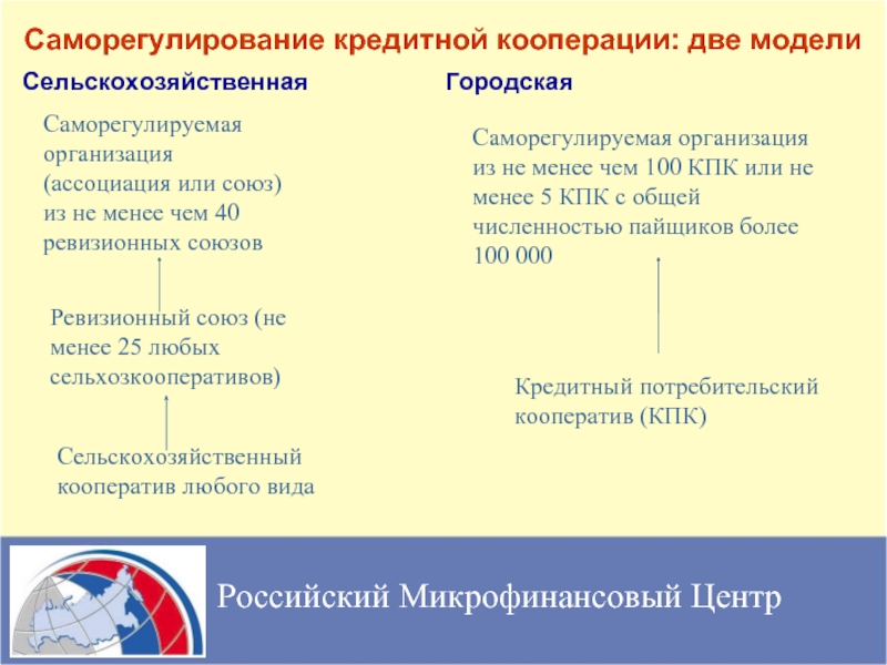 Саморегулируемая организация из не менее чем 100 КПК или не менее 5 КПК с общей численностью пайщиков более 100 000
