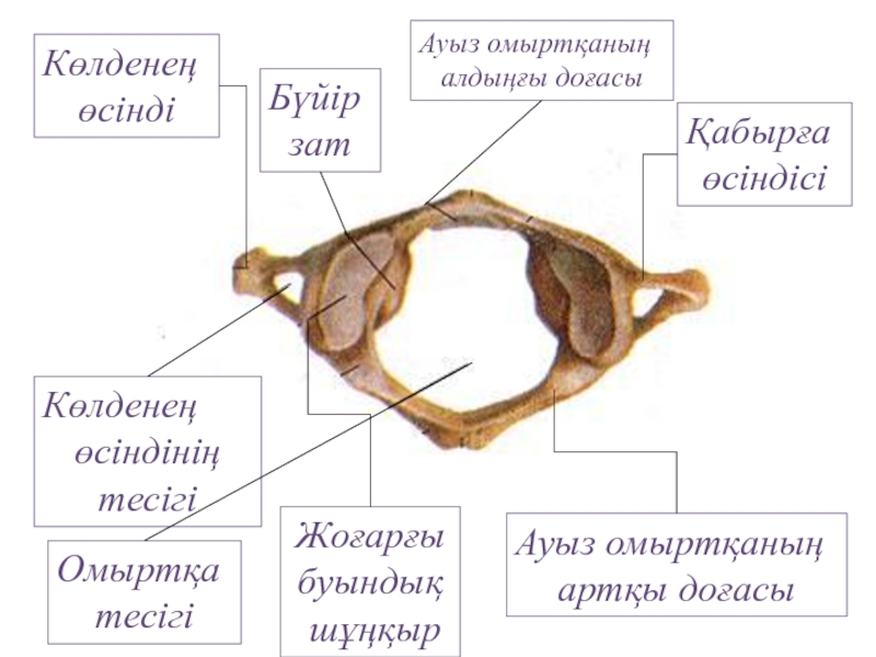 Сыртқы жағында атлантпен бірігетін айдаршықтар бар. Шүйделік қабыршықтың сырт жағында шүйделік шоқы, ал ішкі бетінде шүйделік шоқы мен крест томпағы орналасқан.