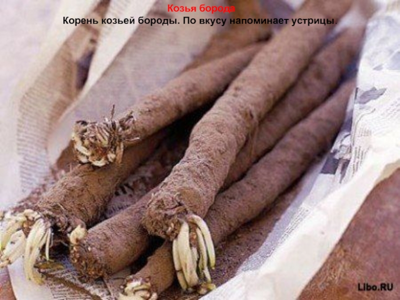 Корень козьей бороды. По вкусу напоминает устрицы.