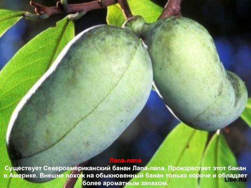 Существует Североамериканский банан Лапа-лапа. Произрастает этот банан в Америке. Внешне похож