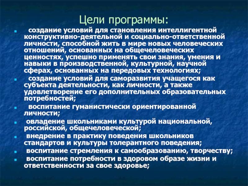 создание условий для становления интеллигентной конструктивно-деятельной и социально-ответственной личности,