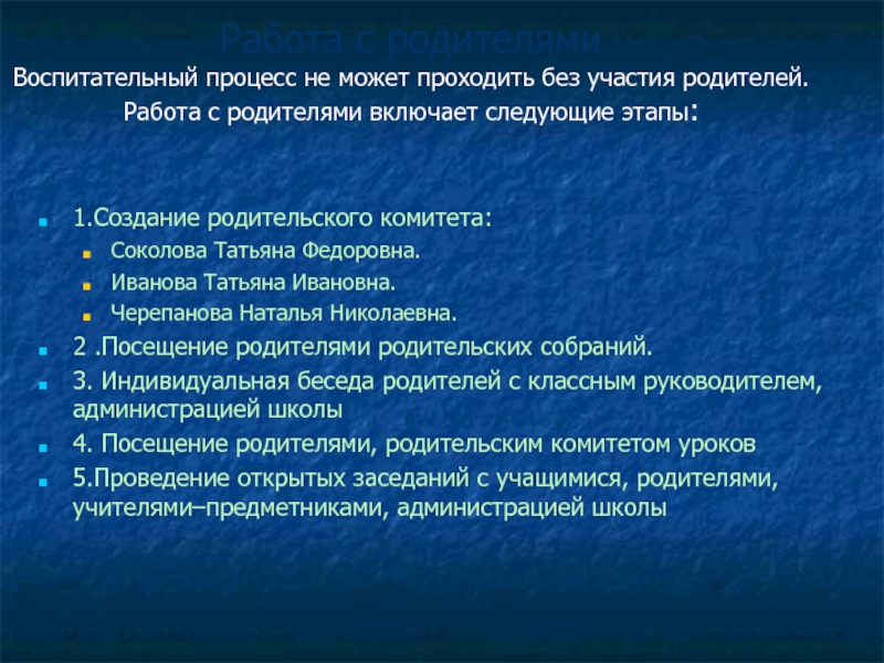 3. Индивидуальная беседа родителей с классным руководителем, администрацией школы