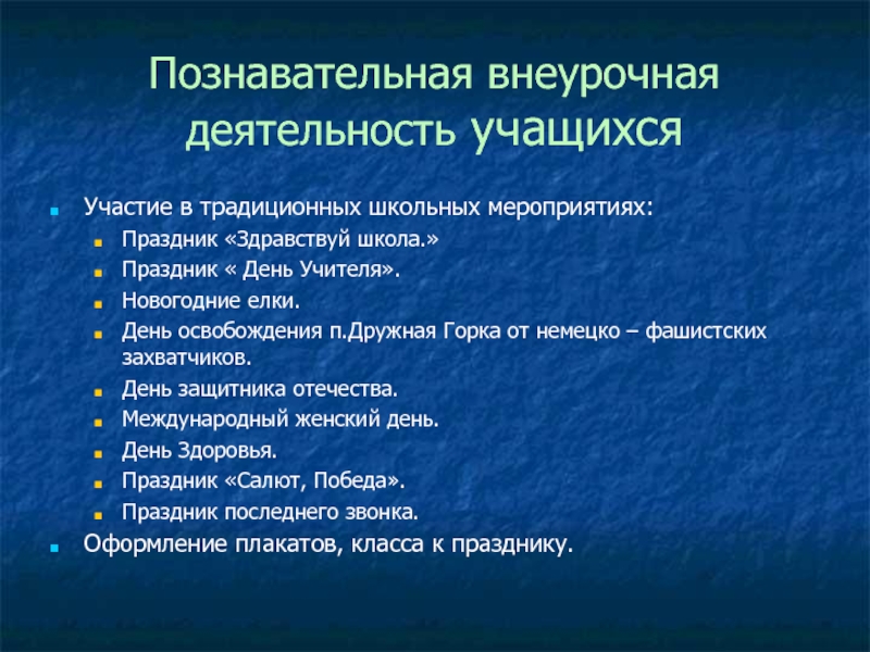 Слайд 9Познавательная внеурочная деятельность учащихся