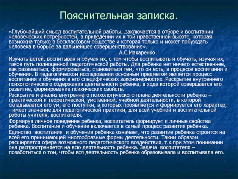 «Глубочайший смысл воспитательной работы…заключается в отборе и воспитании человеческих потребностей,