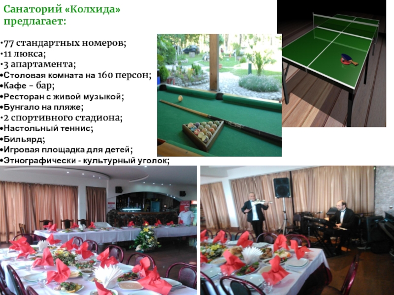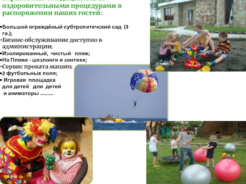 Слайд 12Параллельно с медицинскими оздоровительными процедурами в распоряжении наших гостей: