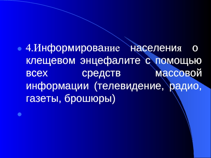 4.Информирование населения о клещевом энцефалите с помощью всех средств массовой информации