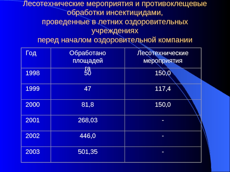 Слайд 10Перед открытием детских летних оздоровительных учреждений ежегодно проводится аккарицидная обработка на