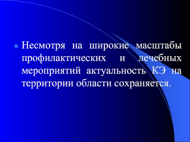 Несмотря на широкие масштабы профилактических и лечебных мероприятий актуальность КЭ на