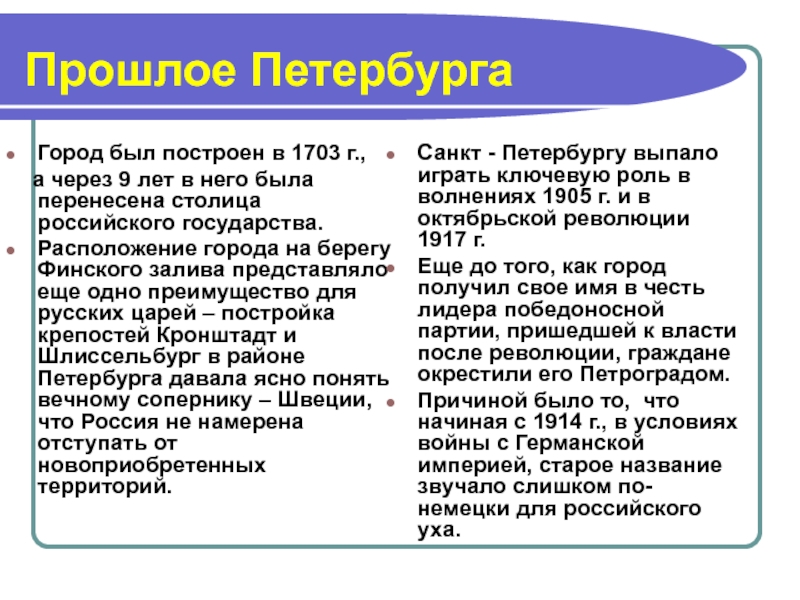 Санкт - Петербургу выпало играть ключевую роль в волнениях 1905 г. и в октябрьской революции 1917 г.