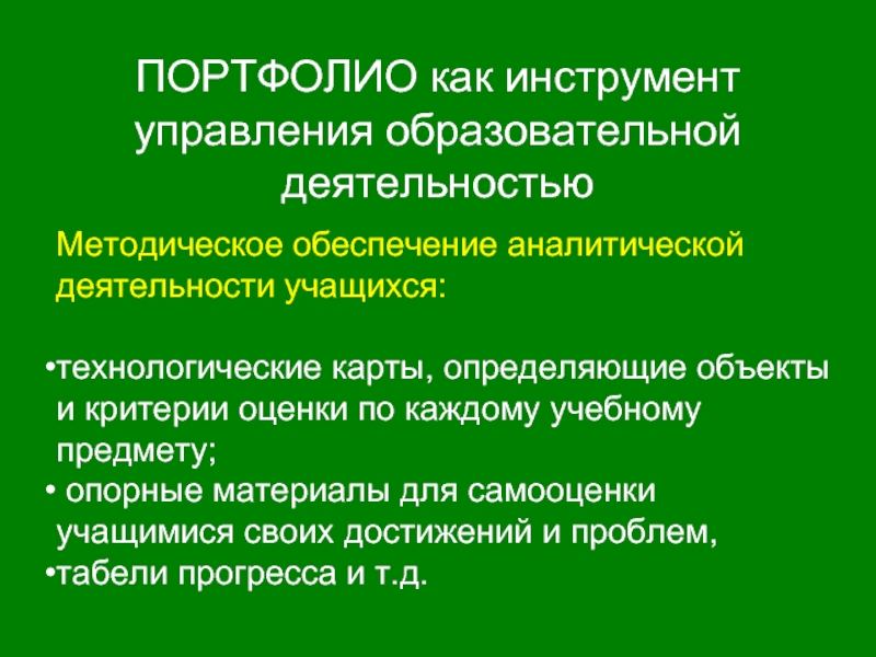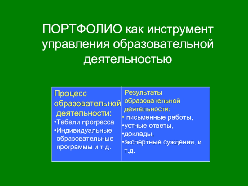 Слайд 20ПОРТФОЛИО как инструмент управления образовательной деятельностью