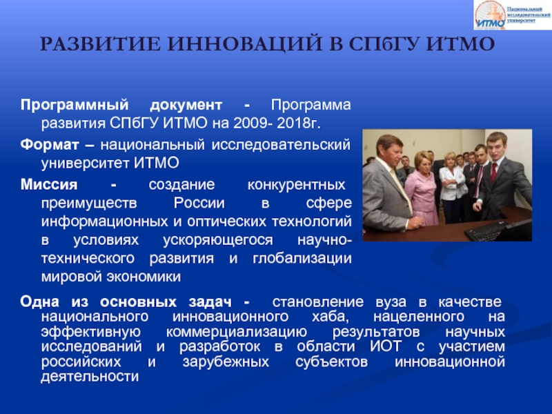 Программный документ - Программа развития СПбГУ ИТМО на 2009- 2018г.