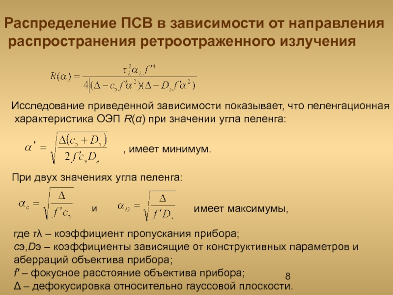 сэ,Dэ – коэффициенты зависящие от конструктивных параметров и аберраций объектива прибора;
