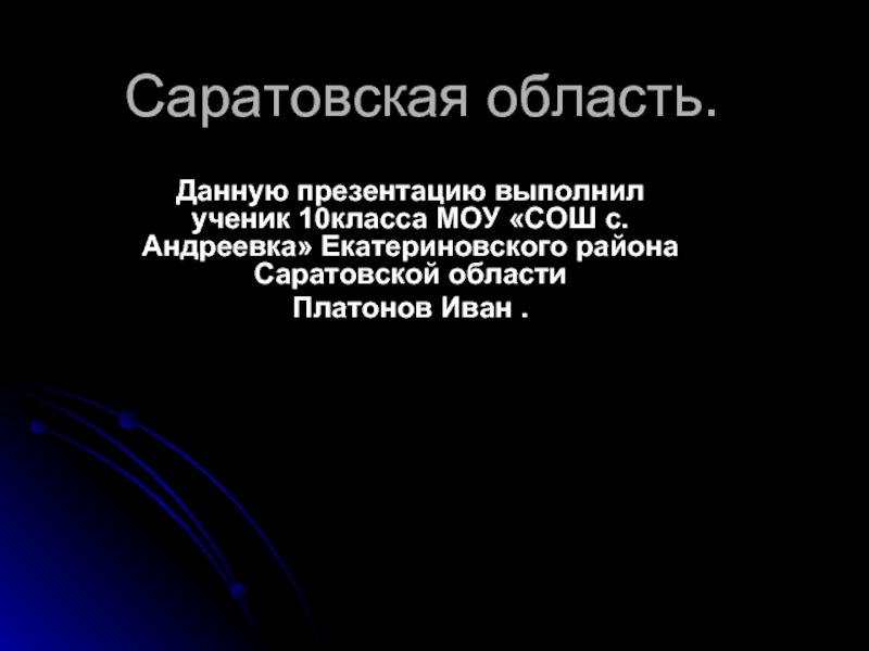 Данную презентацию выполнил ученик 10класса МОУ «СОШ с. Андреевка»