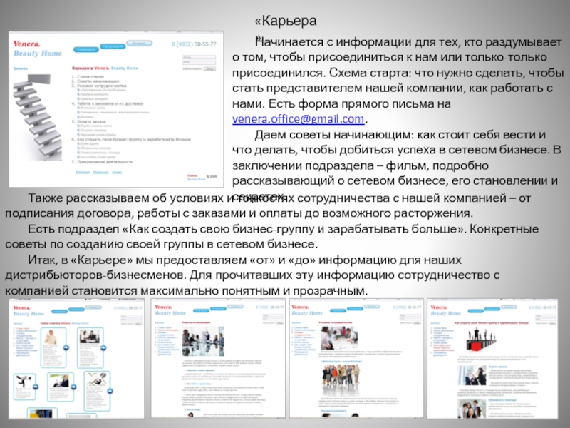 Итак, в «Карьере» мы предоставляем «от» и «до» информацию для наших дистрибьюторов-бизнесменов. Для прочитавших эту информацию сотрудничество с компанией становится максимально понятным и прозрачным.