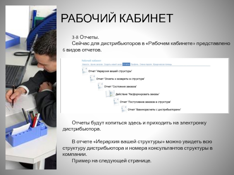 В отчете «Иерархия вашей структуры» можно увидеть всю структуру дистрибьютора и номера консультантов структуры в компании.