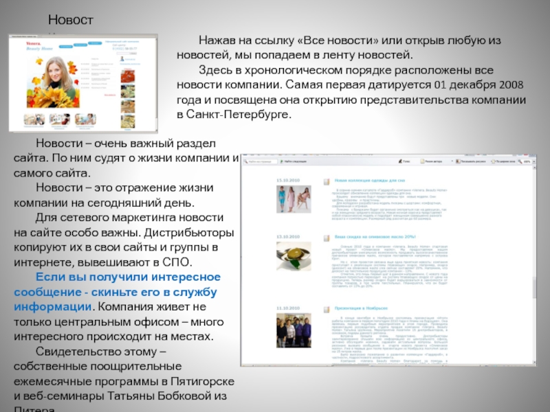 Для сетевого маркетинга новости на сайте особо важны. Дистрибьюторы копируют их в свои сайты и группы в интернете, вывешивают в СПО.