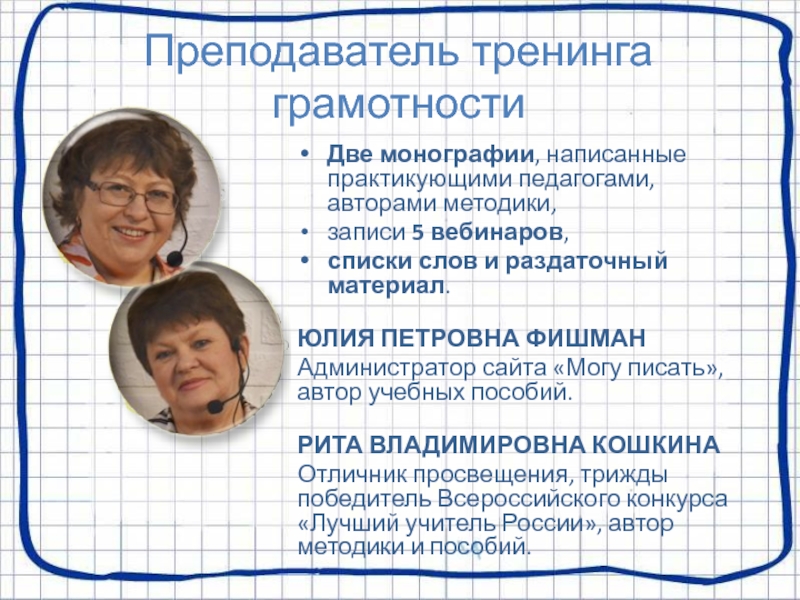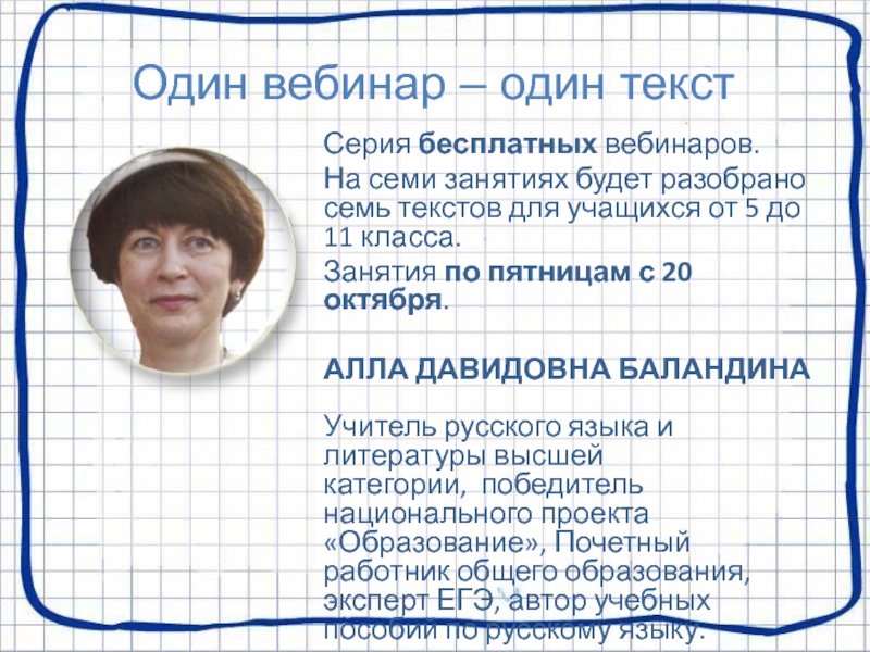 Учитель русского языка и литературы высшей категории, победитель национального проекта «Образование», Почетный работник общего образования, эксперт ЕГЭ, автор учебных пособий по русскому языку.