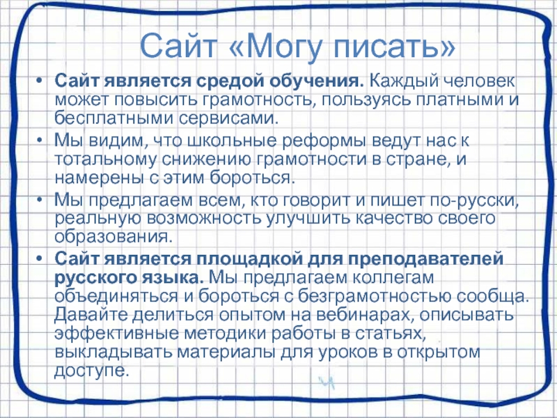 Сайт является средой обучения. Каждый человек может повысить грамотность,