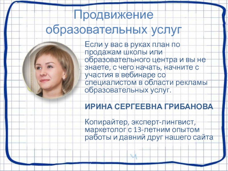 школы или образовательного центра и вы не знаете, с чего начать, начните с участия в вебинаре со специалистом в области рекламы образовательных услуг.