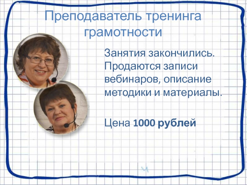 Занятия закончились. Продаются записи вебинаров, описание методики и материалы.