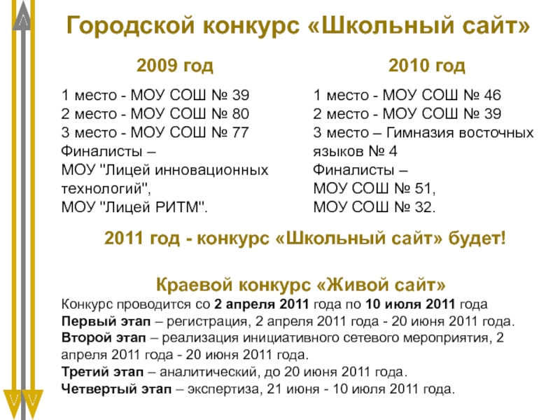3 – есть подробное (школы + учеников + учителей) хронологическое представление всех успехов за прошедшие 3 и более года