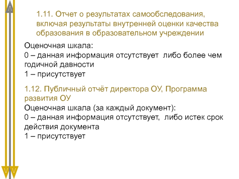 Слайд 121.11. Отчет о результатах самообследования, включая результаты внутренней оценки качества образования