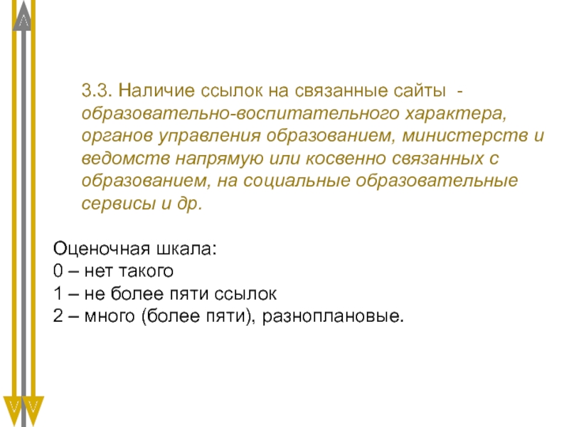 Слайд 213.3. Наличие ссылок на связанные сайты - образовательно-воспитательного характера, органов управления
