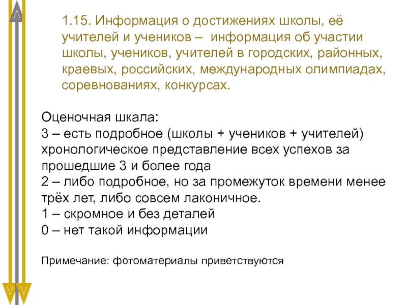 Слайд 151.15. Информация о достижениях школы, её учителей и учеников – информация
