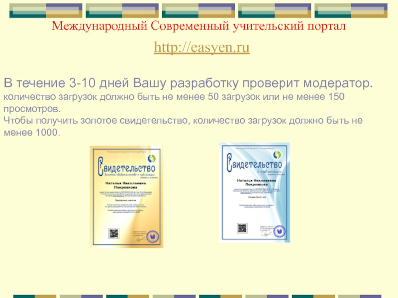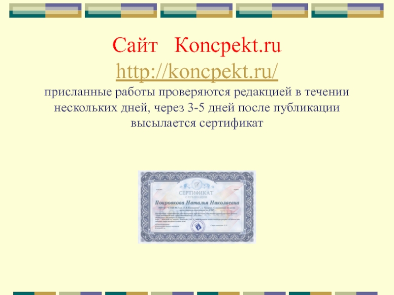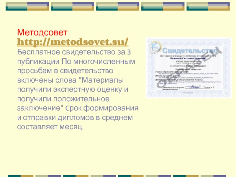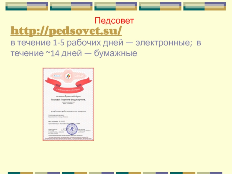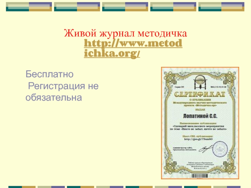 Сайты, предоставляющие сертификат о публикации бесплатно презентация
