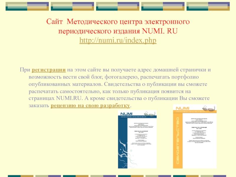 Слайд 5Сайт Методического центра электронного периодического издания NUMI. RU http://numi.ru/index.php